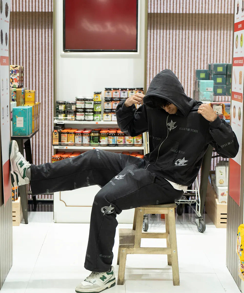 Black | Oversized fit | 100% French Terry cotton | 410 GSM | Bio washed | Hand spray wash | Acrylic screen print | Embroidery